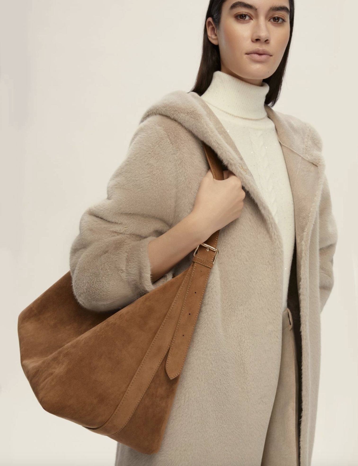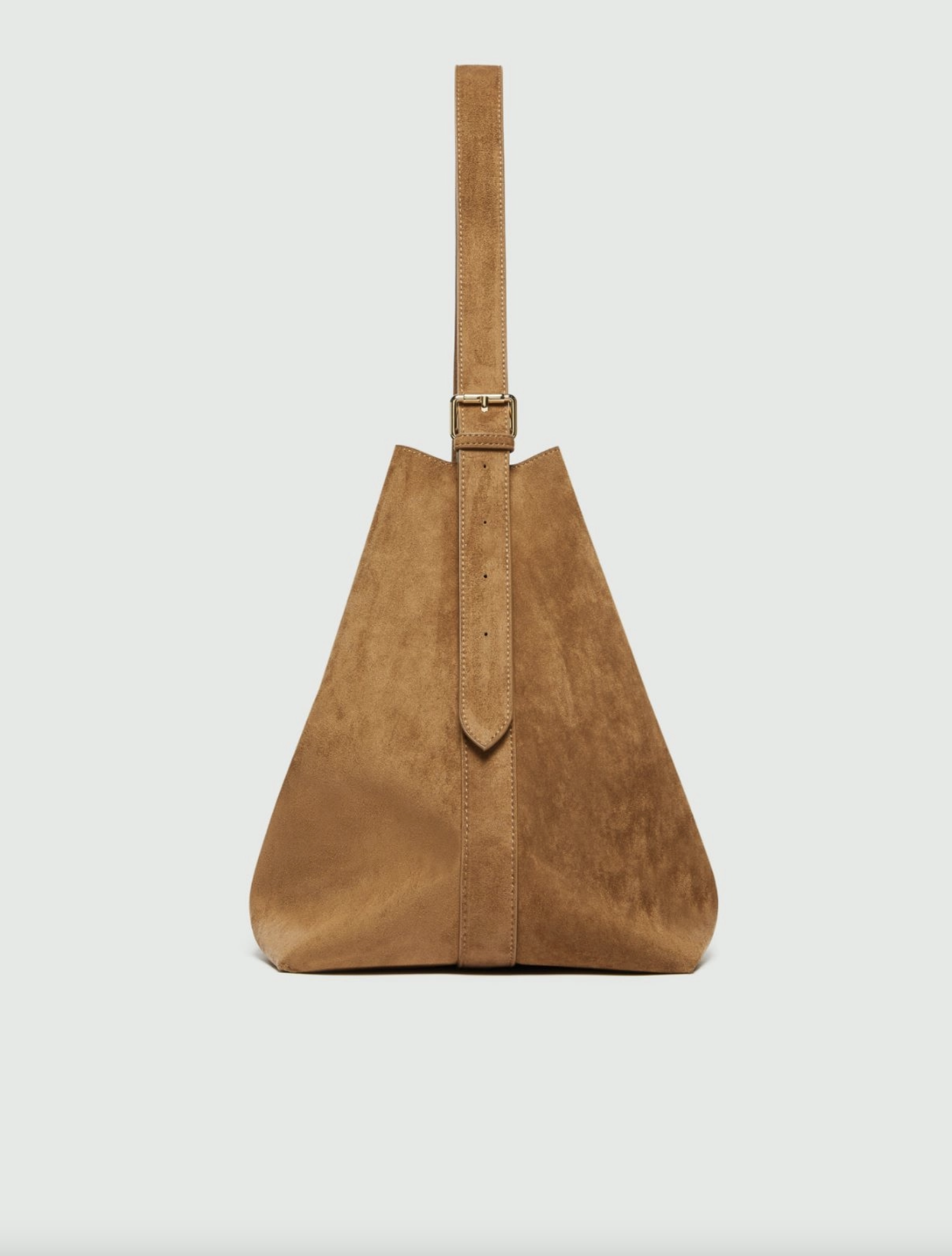 Coated jersey maxi hobo bag. Adjustable handle with a light gold-finish buckle. Zip fastening
