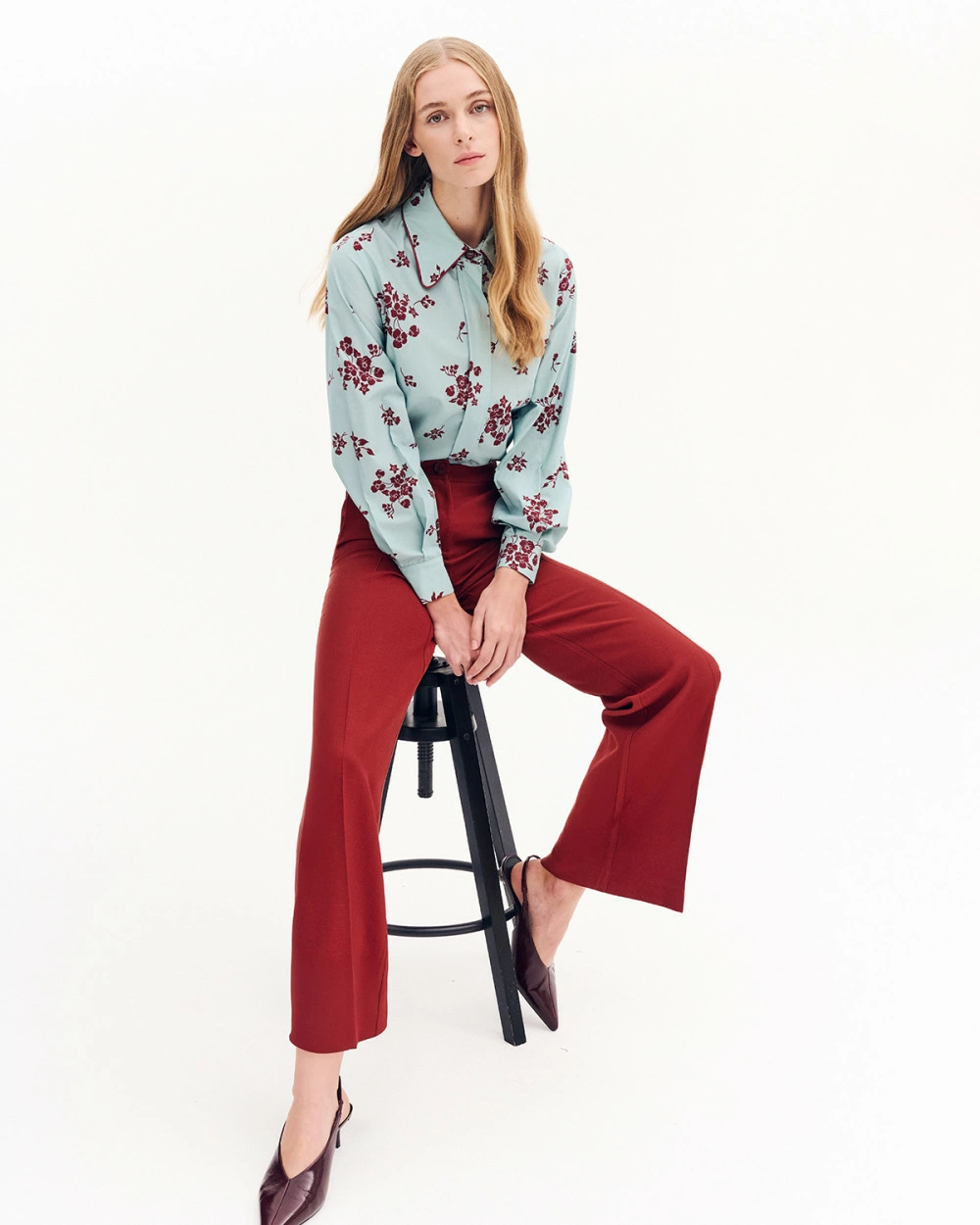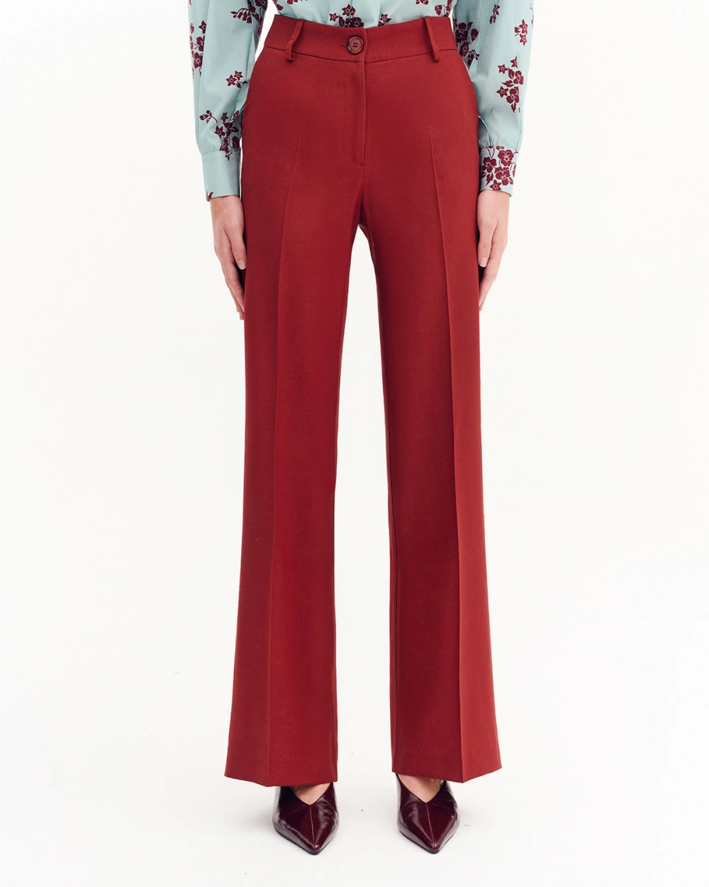 Παντελόνι σε ίσια γραμμή. Κοφτές τσέπες μπροστά και φιλέτο στο πίσω μέρος. Θηλιές για ζώνη και κλείσιμο μπροστά με φερμουάρ και κουμπί.