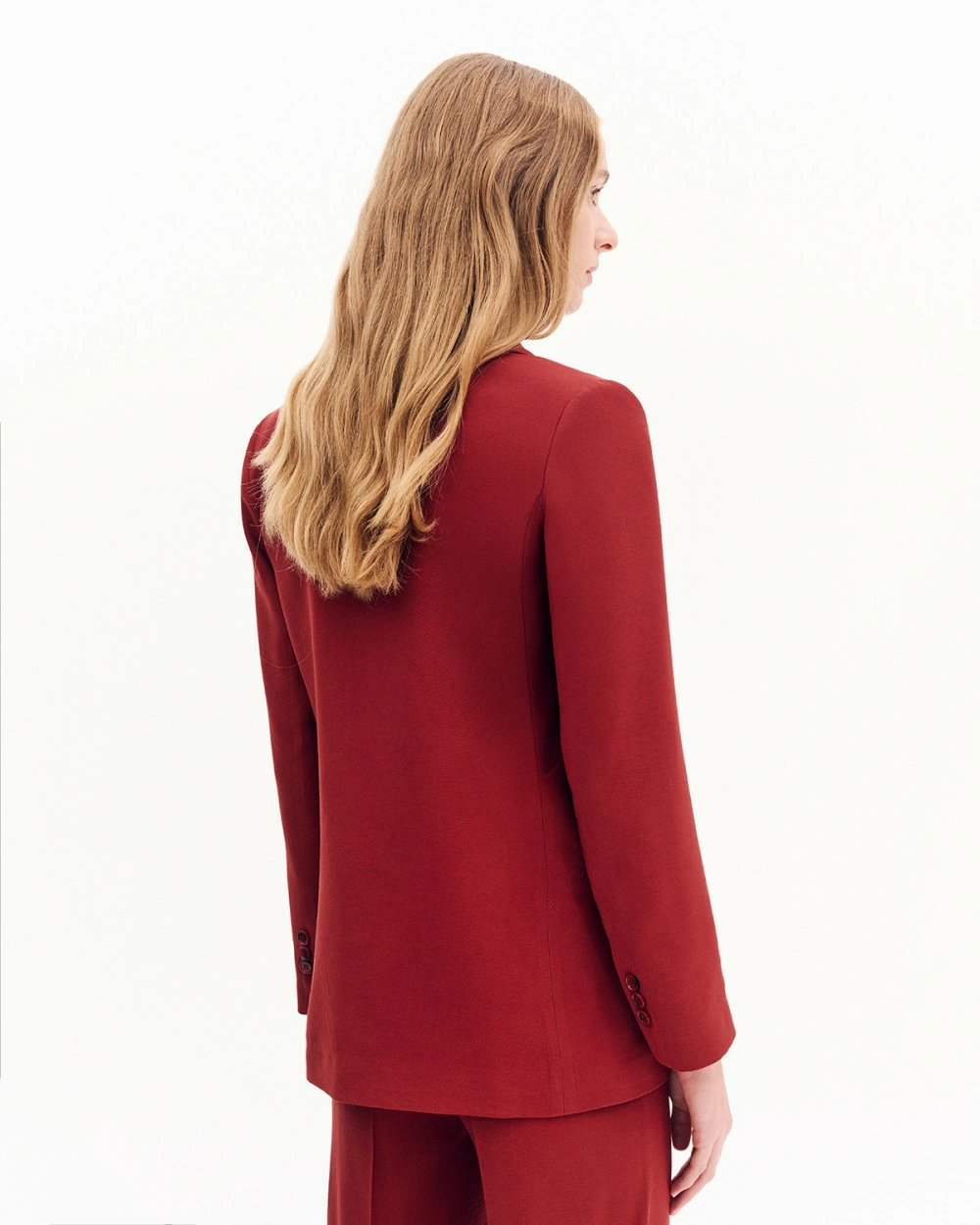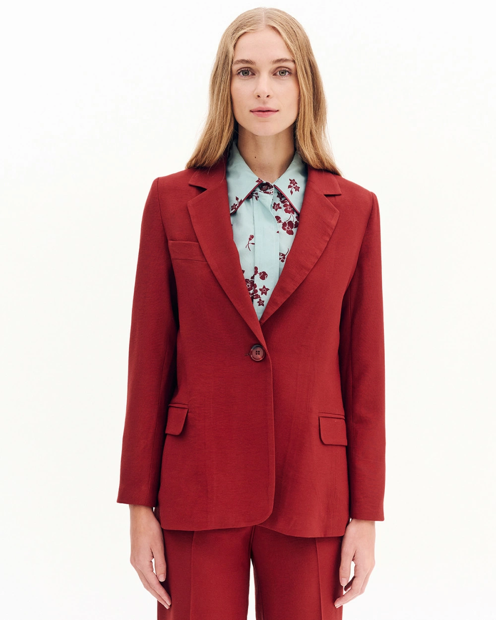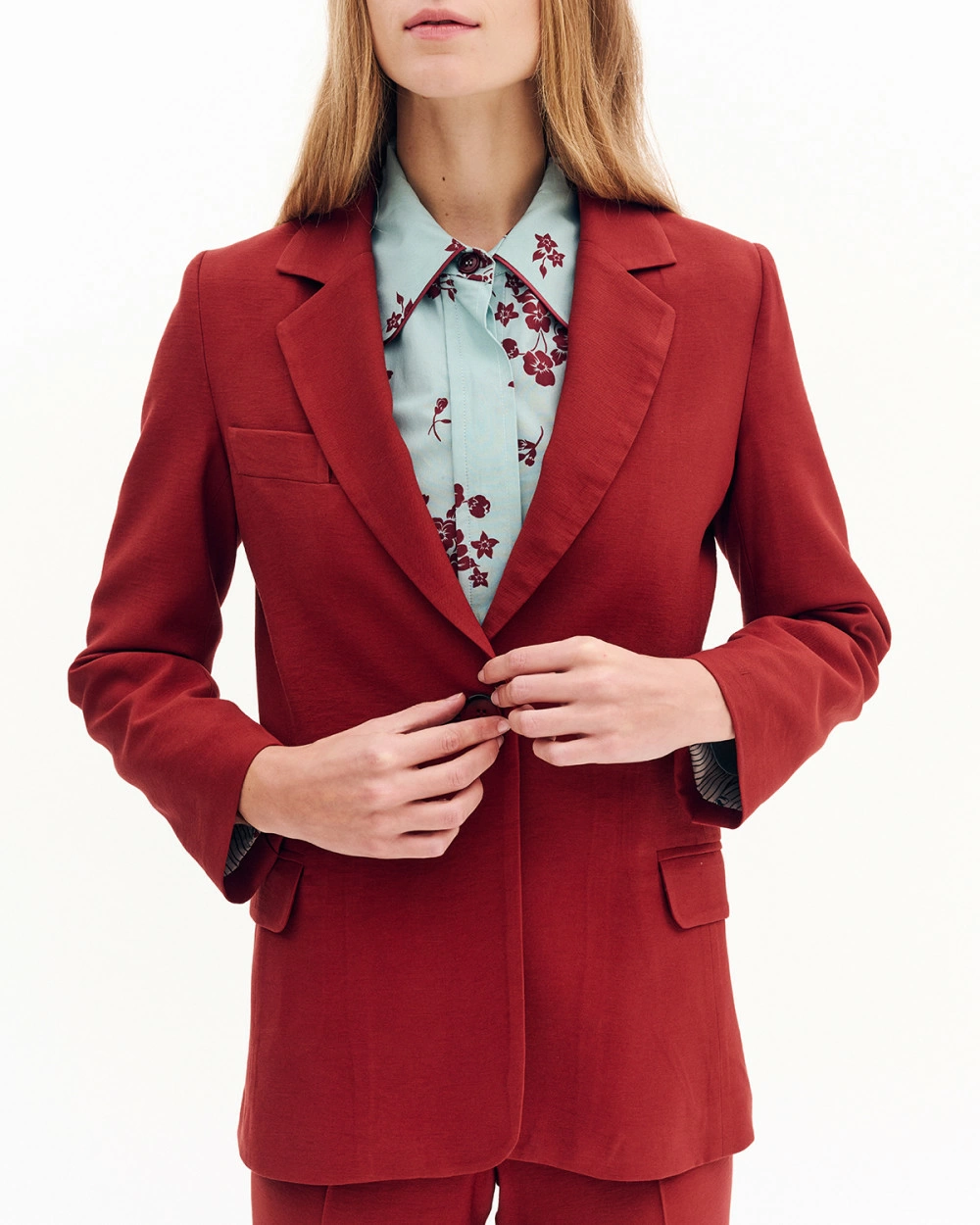 Σακάκι σε ίσια γραμμή μονόκουμπο με γιακά και πέτο. Τσέπες με καπάκι και μακρύ μανίκι.